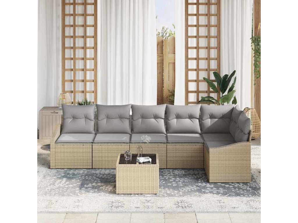 Zahradní jídelní souprava 7 pcs Béžová a Světle šedá 3355419