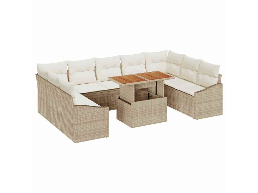 Zahradní jídelní souprava s polštářem 10 pcs Béžová a krémová 3349882