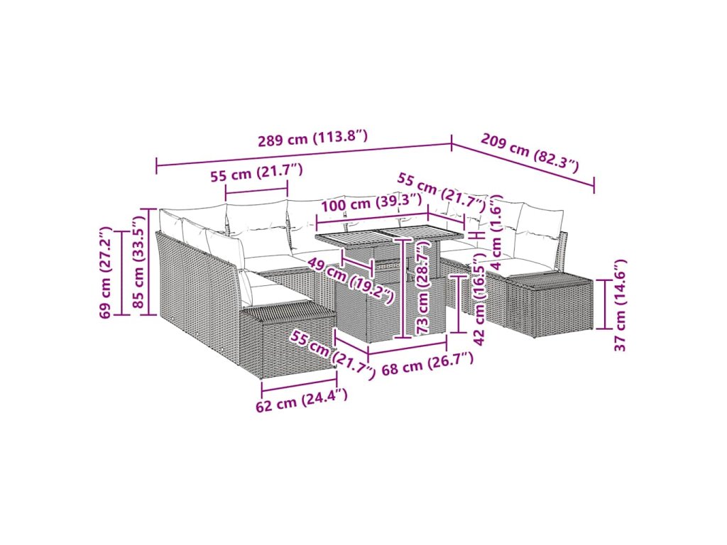 - Součásti balení: Dodáváno s komplexním balíčkem, který zahrnuje dvě boční pohovky, dvě rohové sedačky, pět středových sedaček, všechny s vestavěným úložištěm, a jídelní stůl, který zajišťuje, že má každý své místo. Každý strávník se může těšit z pohodlí, které nabízejí sedací polštáře plněné pěnou, což zvyšuje zážitek ze sezení. Čtvercové opěrky rukou jsou promyšleně navrženy pro dodatečnou podporu a spokojenost uživatele.