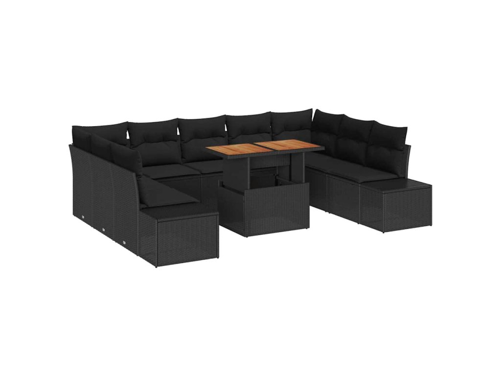 Zahradní jídelní souprava s polštářem 10 pcs Černá a hnědá 3350009
