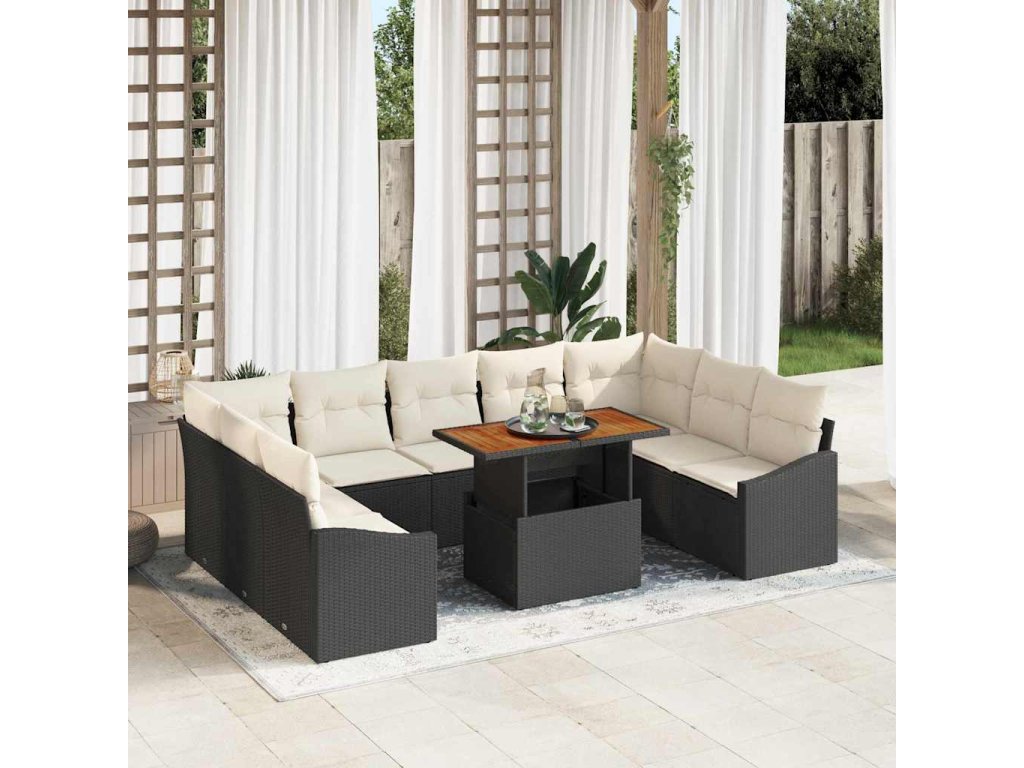 Zahradní jídelní souprava s polštářem 10 pcs Černá a krémová 3349879