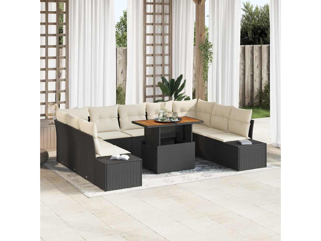 Zahradní jídelní souprava s polštářem 10 pcs Černá a krémová 3350005
