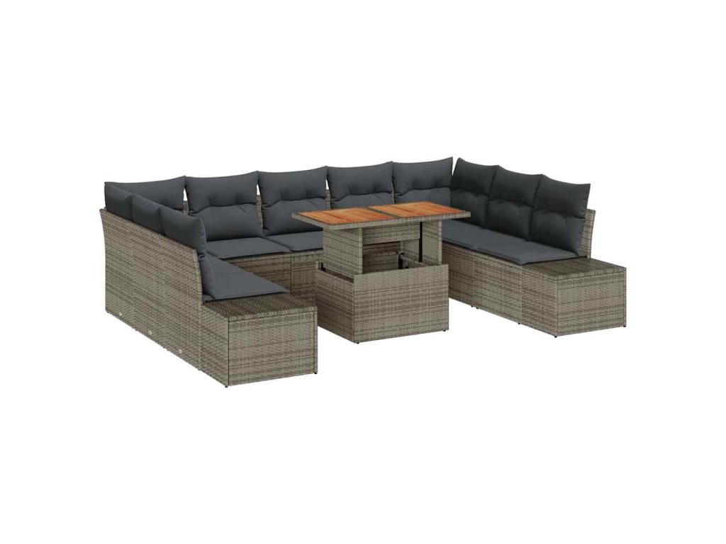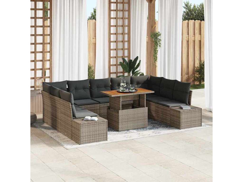 Zahradní jídelní souprava s polštářem 10 pcs Šedá a hnědá 3350006