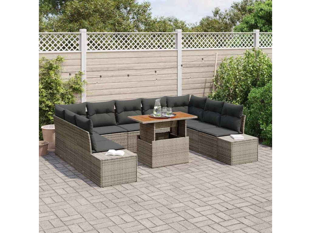 - Součásti balení: Dodáváno s komplexním balíčkem, který zahrnuje dvě boční pohovky, dvě rohové sedačky, pět středových sedaček, všechny s vestavěným úložištěm, a jídelní stůl, který zajišťuje, že má každý své místo. Každý strávník se může těšit z pohodlí, které nabízejí sedací polštáře plněné pěnou, což zvyšuje zážitek ze sezení. Čtvercové opěrky rukou jsou promyšleně navrženy pro dodatečnou podporu a spokojenost uživatele.