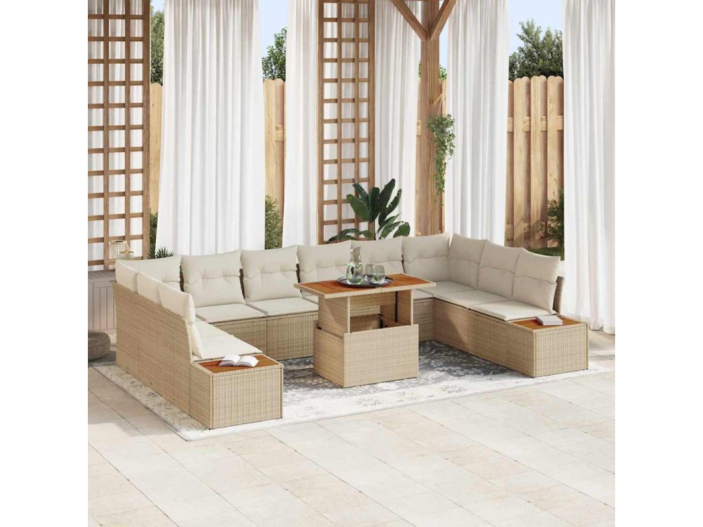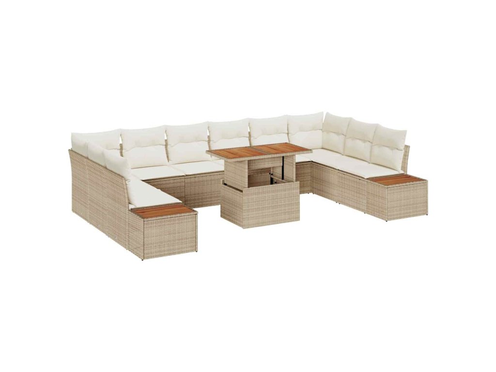 Zahradní jídelní souprava s polštářem 11 pcs Béžová a krémová 3350108