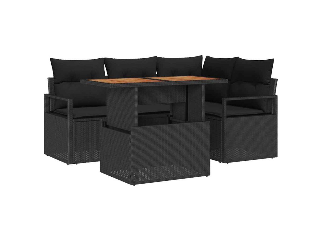 Zahradní jídelní souprava s polštářem 5 pcs Černá a hnědá 3349708