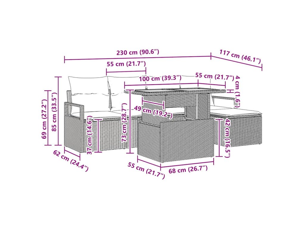 Tento skvěle zpracovaný venkovní modulární set na sezení zvedá úroveň zahradního luxusu díky svému modernímu designu. Představte si slunečné odpoledne nebo večerní posezení, kdy perfektní mix vzhledu a funkce promění každou terasu nebo zahradu. Jeho elegantní styl vás zve k tomu, abyste si užili klidné chvíle s přáteli a rodinou a přitom vytvořil příjemnou atmosféru venku.
