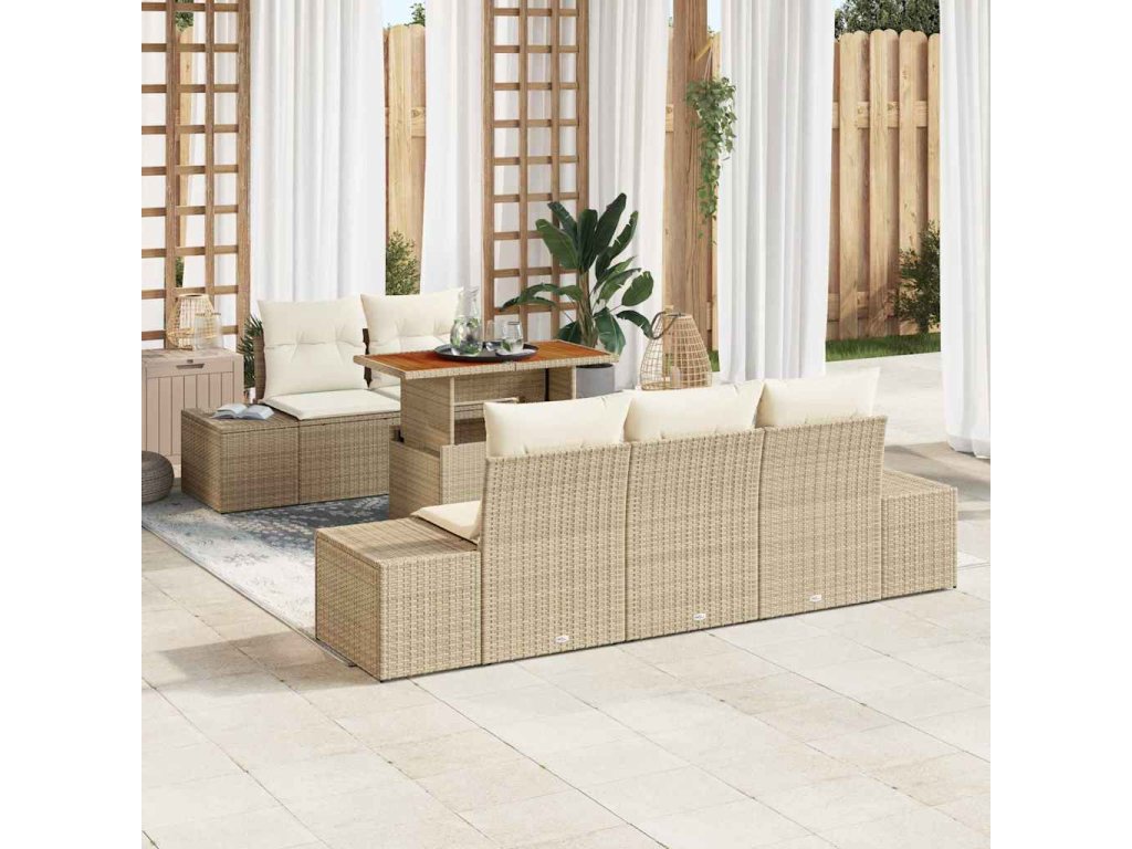 Zahradní jídelní souprava s polštářem 6 pcs Béžová a krémová 3349903