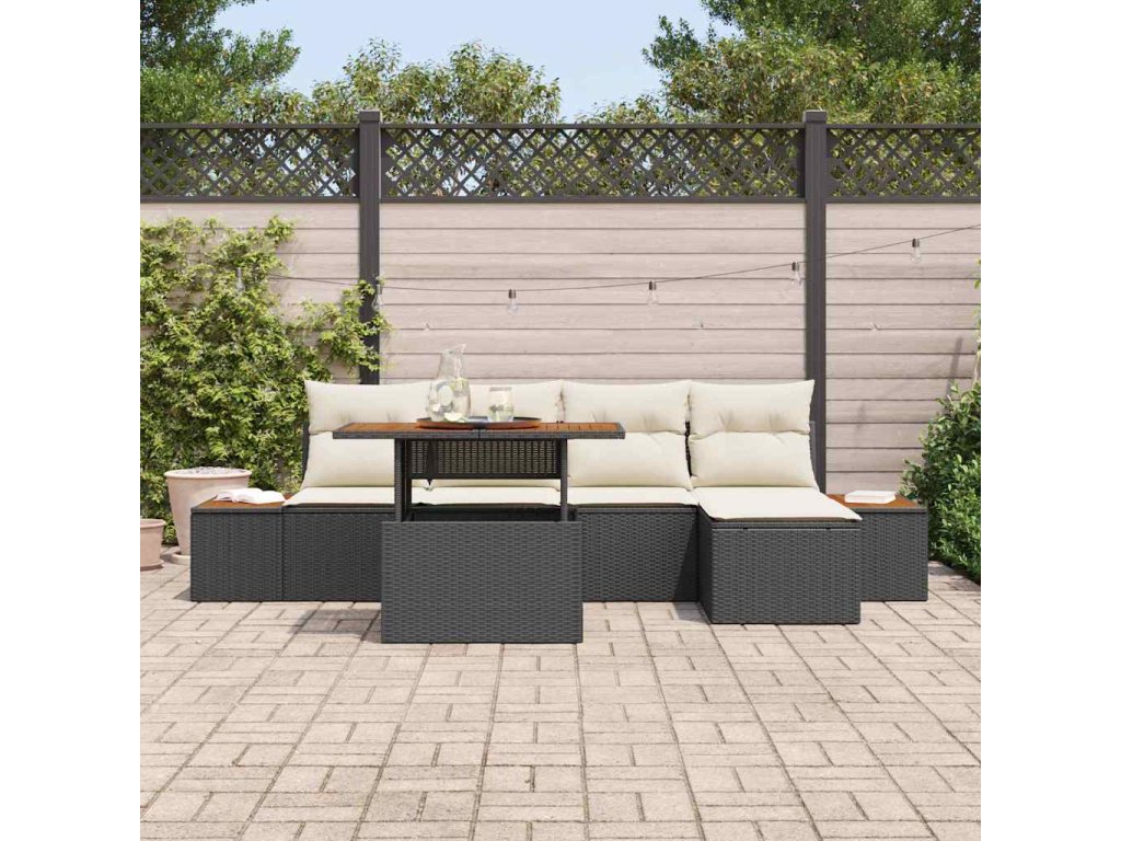 Zahradní jídelní souprava s polštářem 6 pcs Černá a béžová 3350059