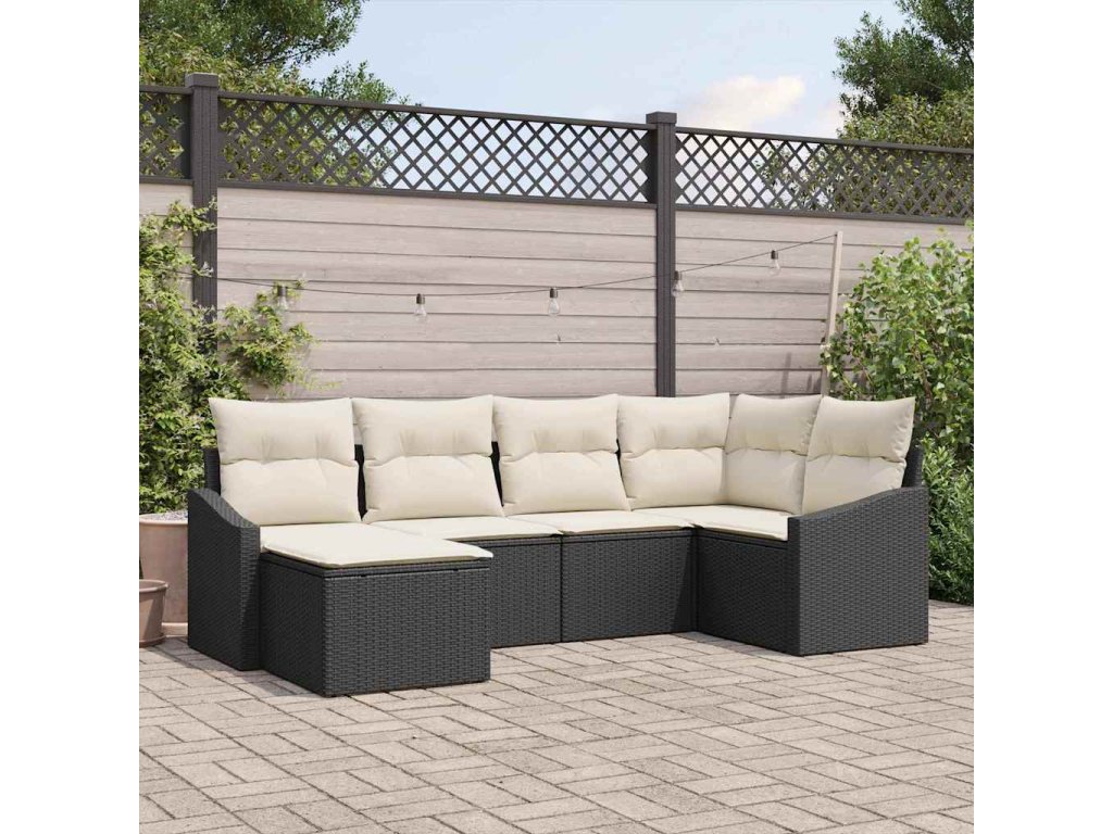 Zahradní jídelní souprava s polštářem 6 pcs Černá a krémová 3355456