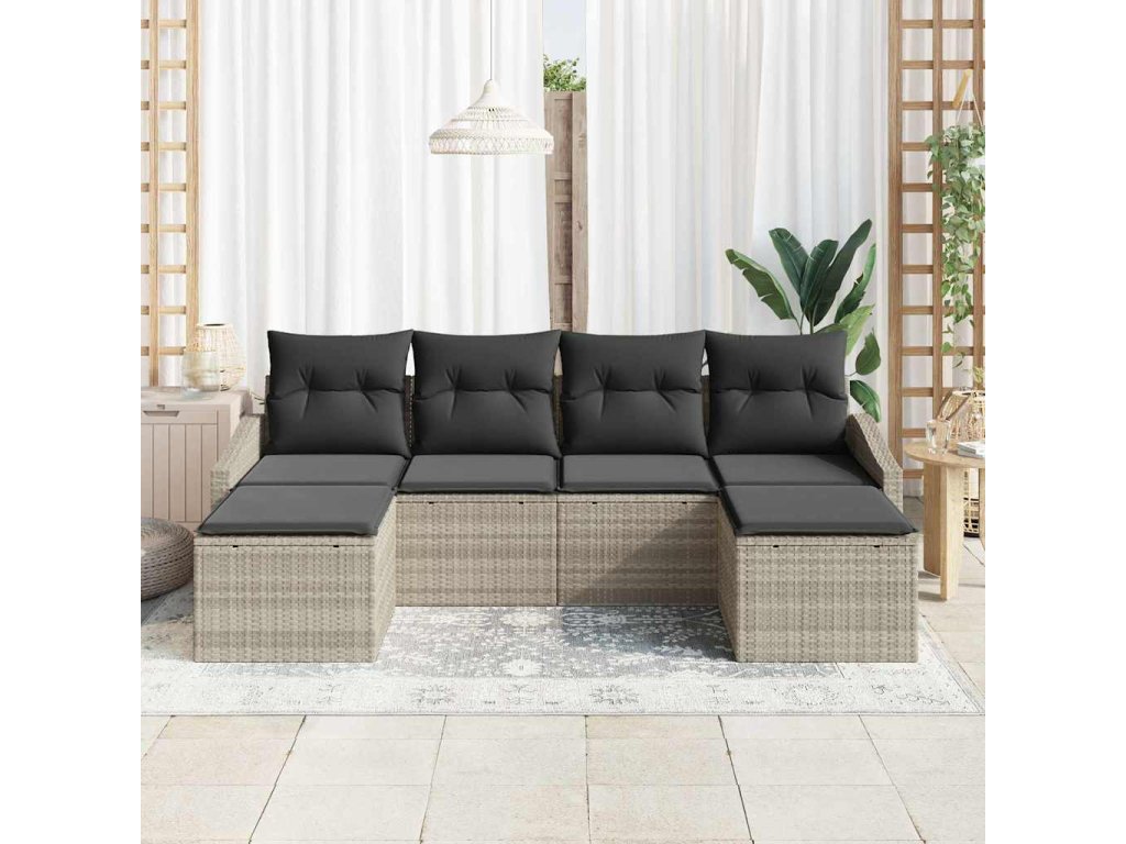 Zahradní jídelní souprava s polštářem 6 pcs Světle šedá 3355501