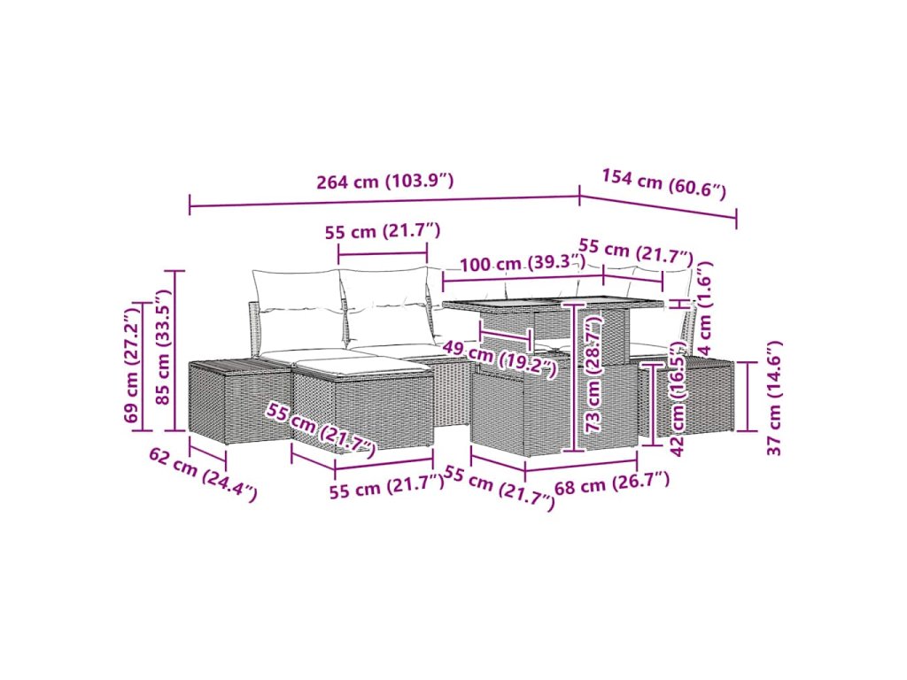 - Chytré úložné možnosti Přijměte funkčnost s chytrými integrovanými úložnými řešeními. Rohové a boční pohovky spolu s taburetem mají výhodné úložné prostory. Tyto skryté prostory jsou ideální pro ukládání venkovních nezbytností, jako jsou polštáře nebo deky. Tato praktická funkce pomáhá udržovat pořádek a rychle uklidit vaši venkovní oblast, aby bylo vše vždy po ruce.