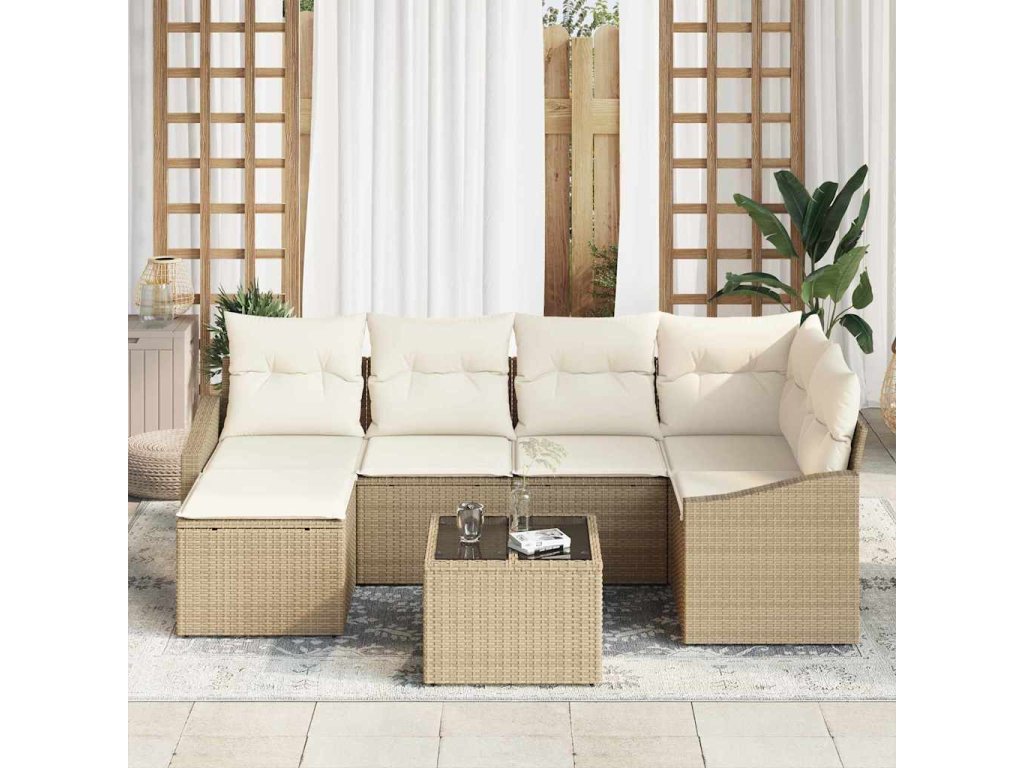 Zahradní jídelní souprava s polštářem 7 pcs Béžová a krémová 3355470