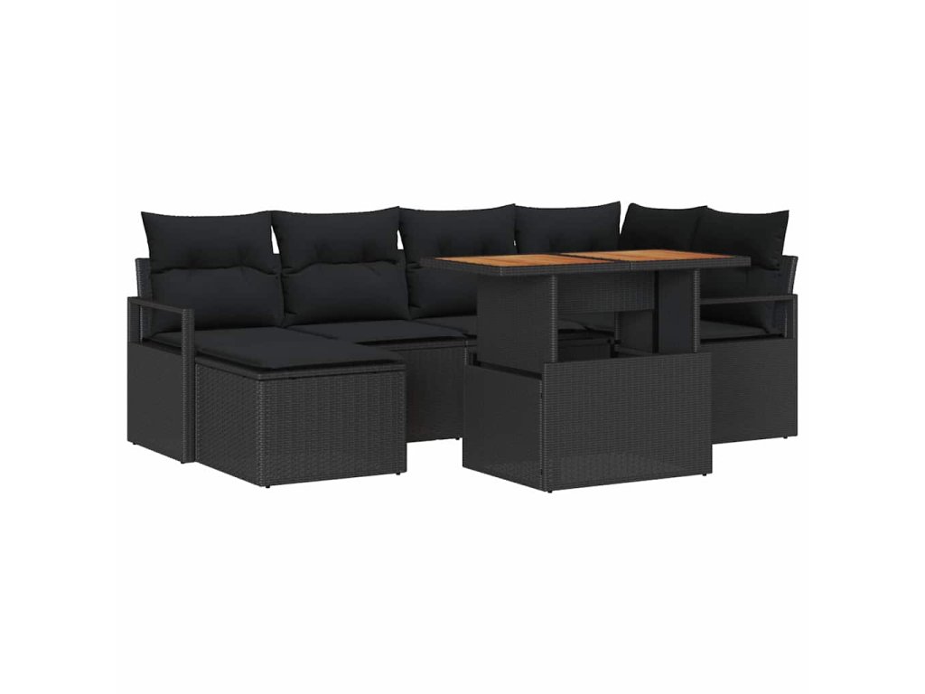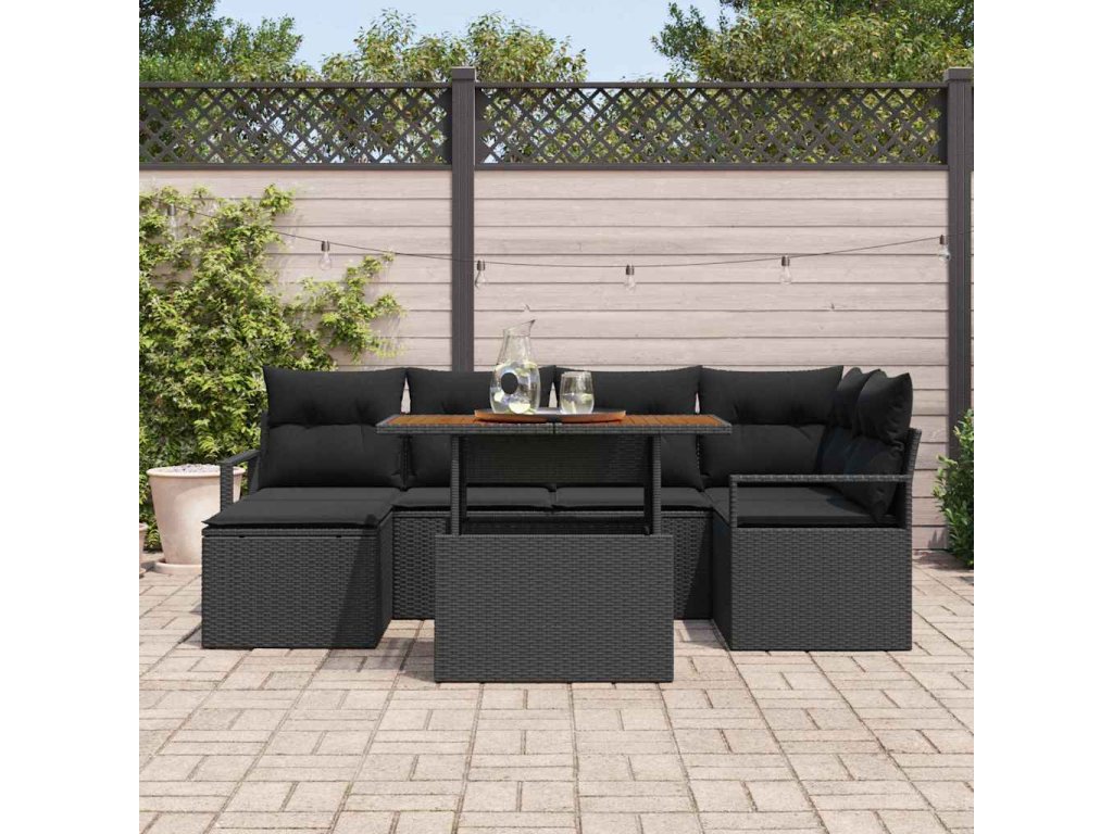 Zahradní jídelní souprava s polštářem 7 pcs Černá a hnědá 3349736