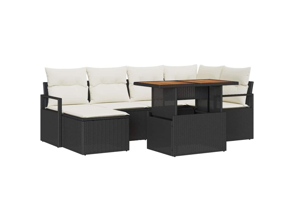 Zahradní jídelní souprava s polštářem 7 pcs Černá a krémová 3349732