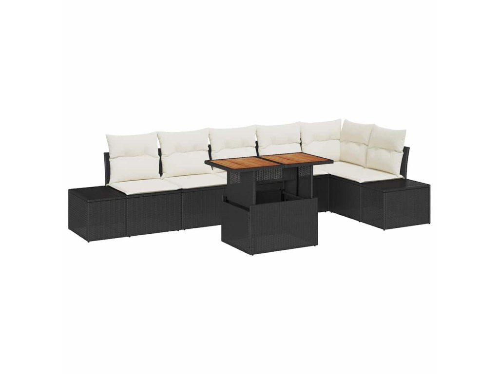 Zahradní jídelní souprava s polštářem 7 pcs Černá a krémová 3349970