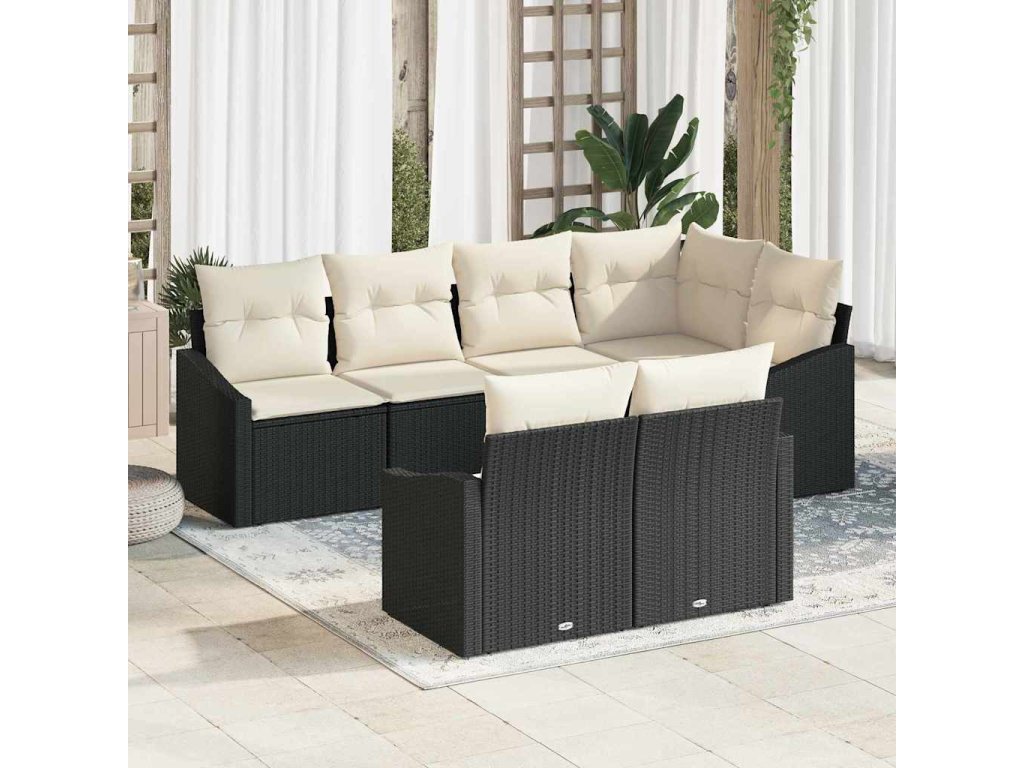 Zahradní jídelní souprava s polštářem 7 pcs Černá a krémová 3355426