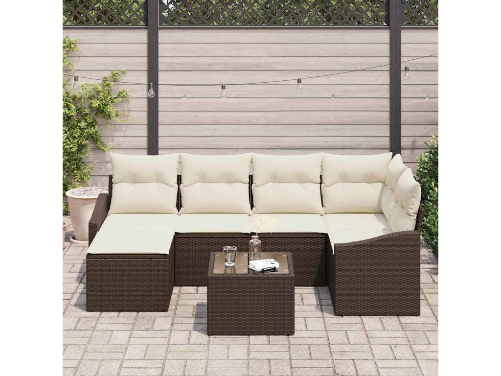 Zahradní jídelní souprava s polštářem 7 pcs Hnědá a krémová 3355467