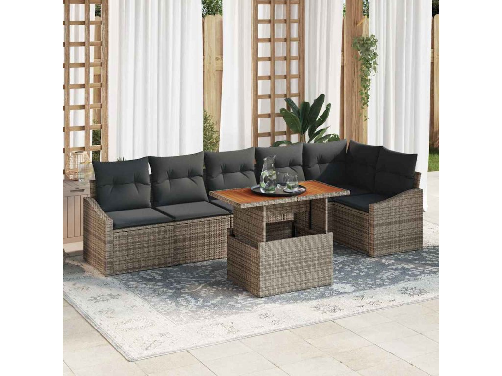 Zahradní jídelní souprava s polštářem 7 pcs Šedá a hnědá 3349845