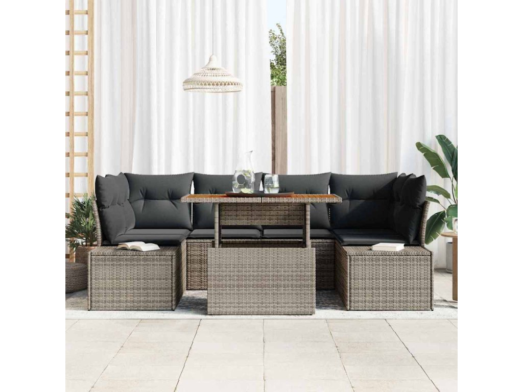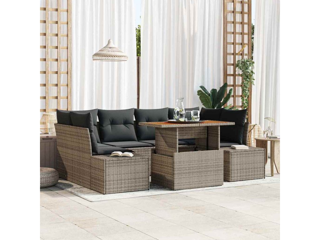 Zahradní jídelní souprava s polštářem 7 pcs Šedá a hnědá 3349915