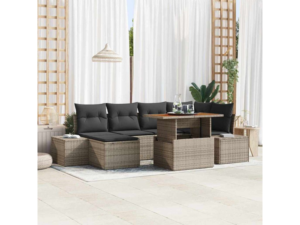 Zahradní jídelní souprava s polštářem 7 pcs Šedá a hnědá 3349985
