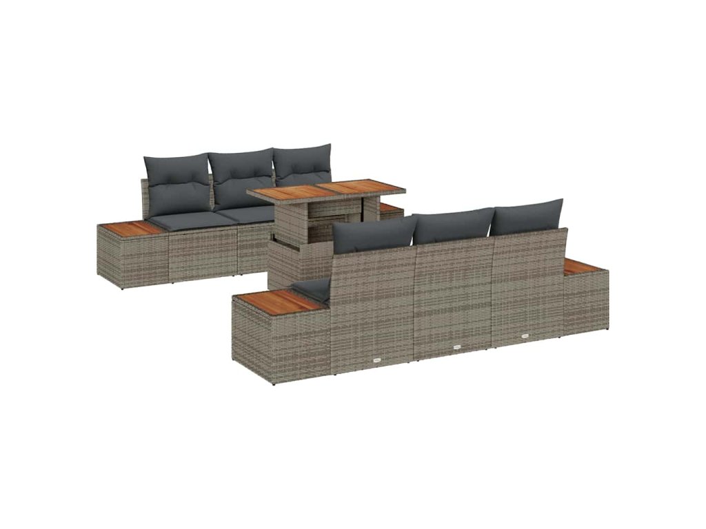 - Materiály: Vyrobený z kvalitního poly ratanu, tento set vydrží různé počasí a má elegantní, moderní vzhled. Pevný ocelový rám, potažený práškovou barvou, brání rzi, zatímco akáciové dřevěné povrchy dodávají stylový prvek, kombinující trvanlivost s estetikou.