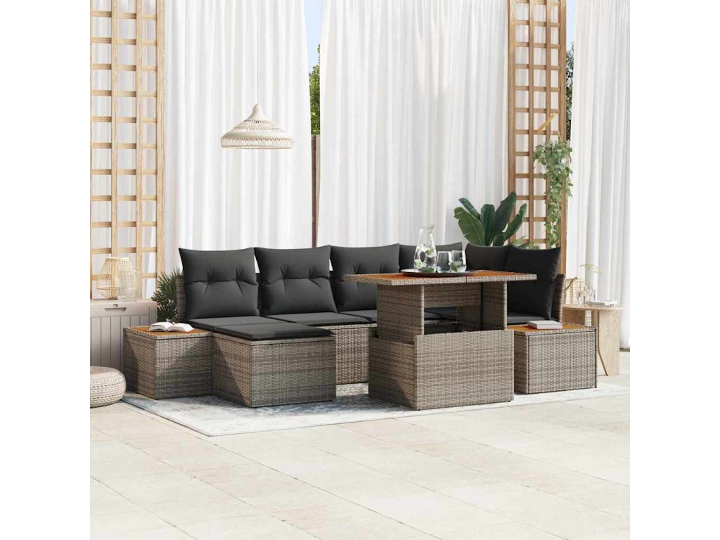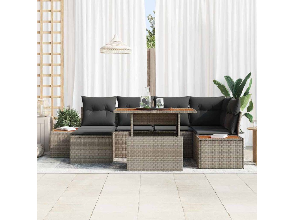 Zahradní jídelní souprava s polštářem 7 pcs Šedá a hnědá 3350086