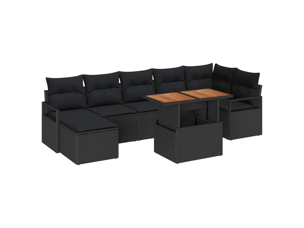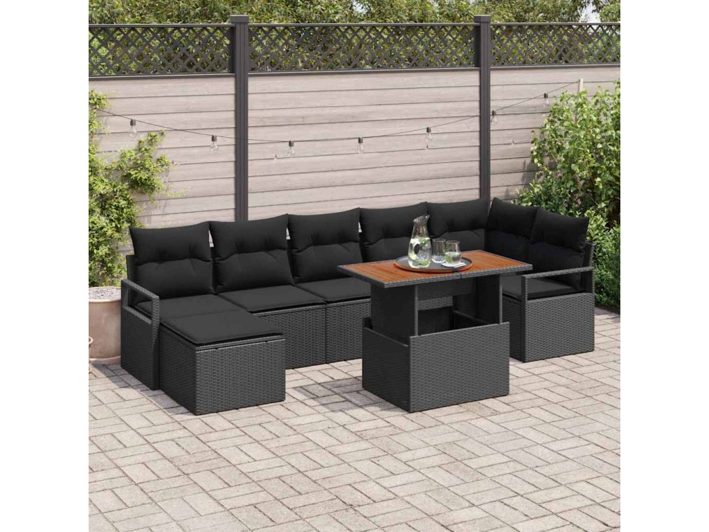 Zahradní jídelní souprava s polštářem 8 pcs Černá a hnědá 3349743