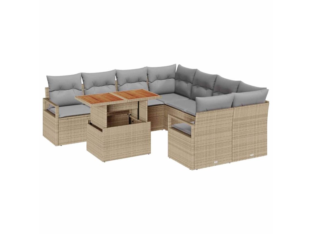 Zahradní jídelní souprava s polštářem 9 pcs Beige a šedá 3349692