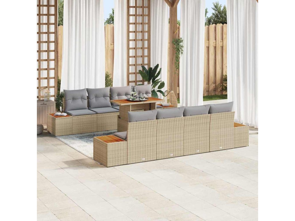 Zahradní jídelní souprava s polštářem 9 pcs Beige a šedá 3350052