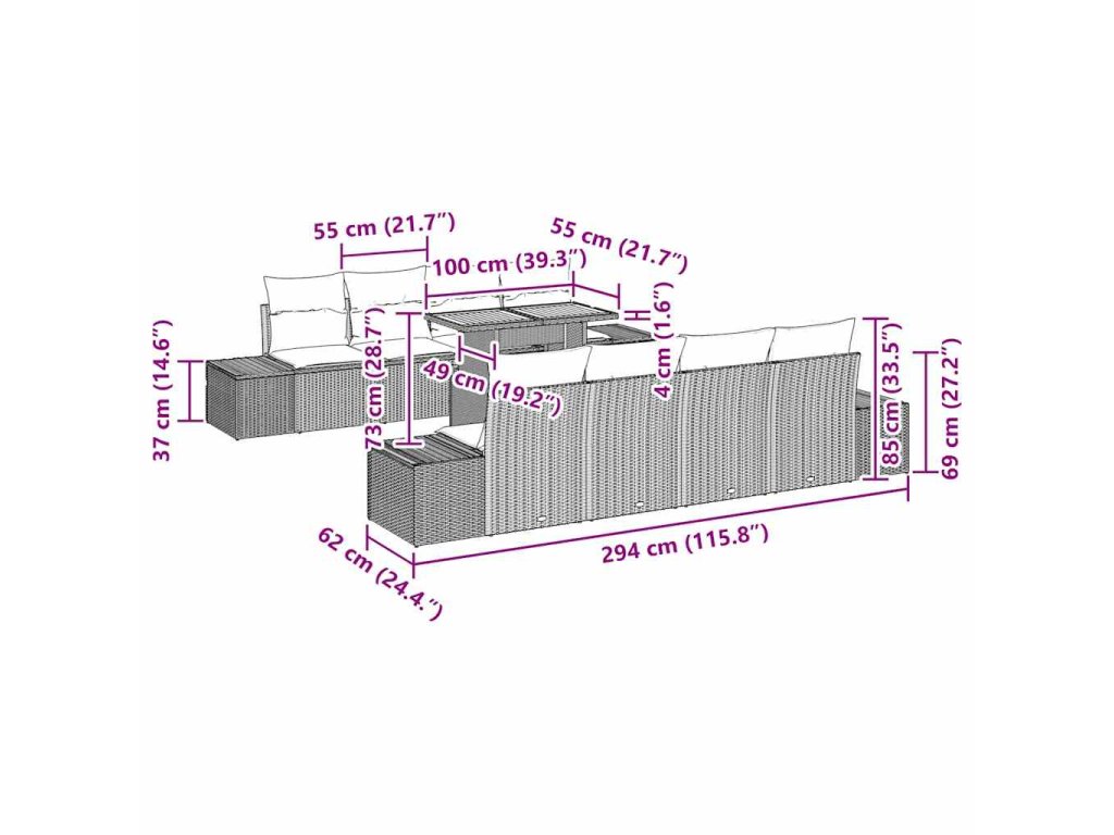 - Úložná pohodlnost Tato sada obsahuje pohovky s integrovanými úložnými funkcemi, které jsou ideální pro udržení vašich venkovních potřeb pečlivě uschovaných, udržující pořádek a zároveň maximalizující využití prostoru.