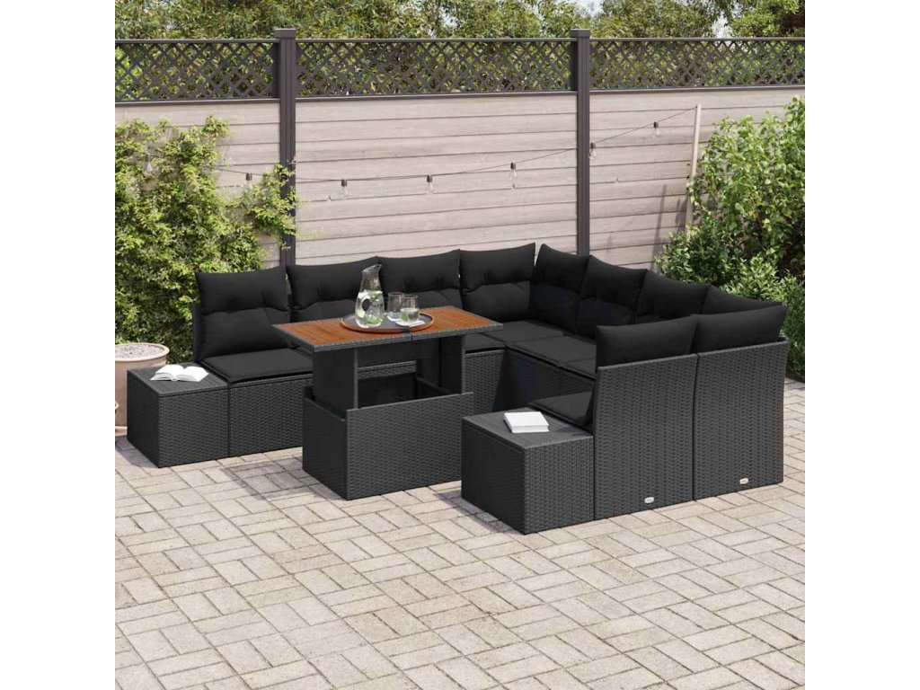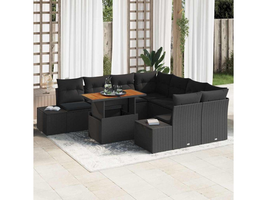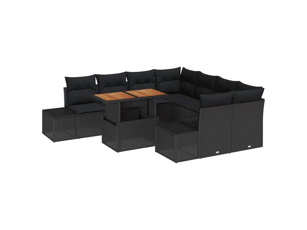 Zahradní jídelní souprava s polštářem 9 pcs Černá a hnědá 3349946