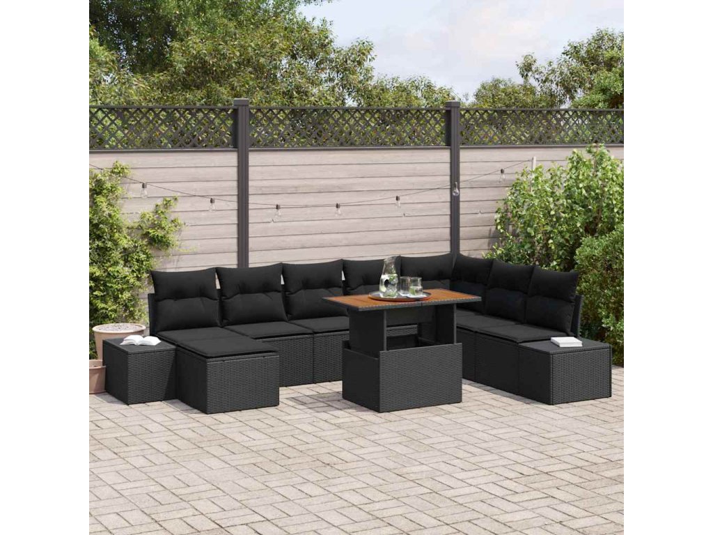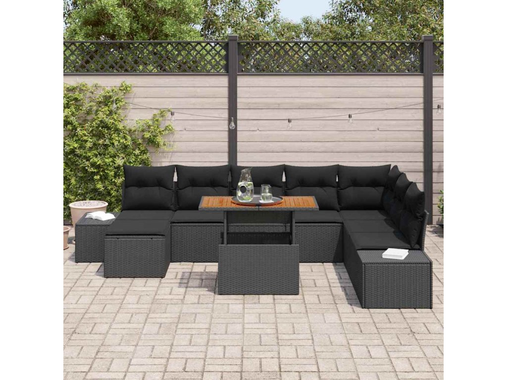 Zahradní jídelní souprava s polštářem 9 pcs Černá a hnědá 3350002