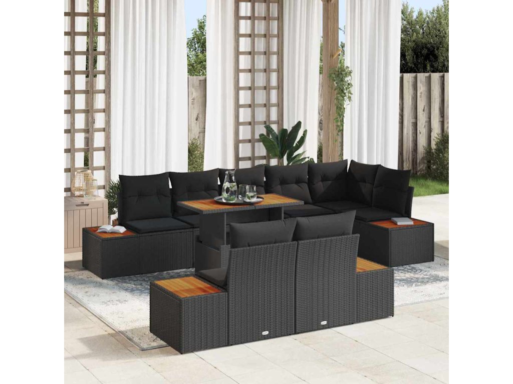 Zahradní jídelní souprava s polštářem 9 pcs Černá a hnědá 3350080