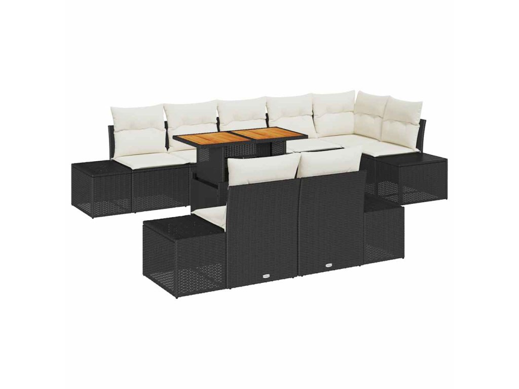 Zahradní jídelní souprava s polštářem 9 pcs Černá a krémová 3349977
