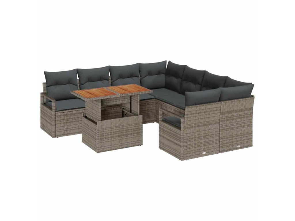 Zahradní jídelní souprava s polštářem 9 pcs Šedá a hnědá 3349691