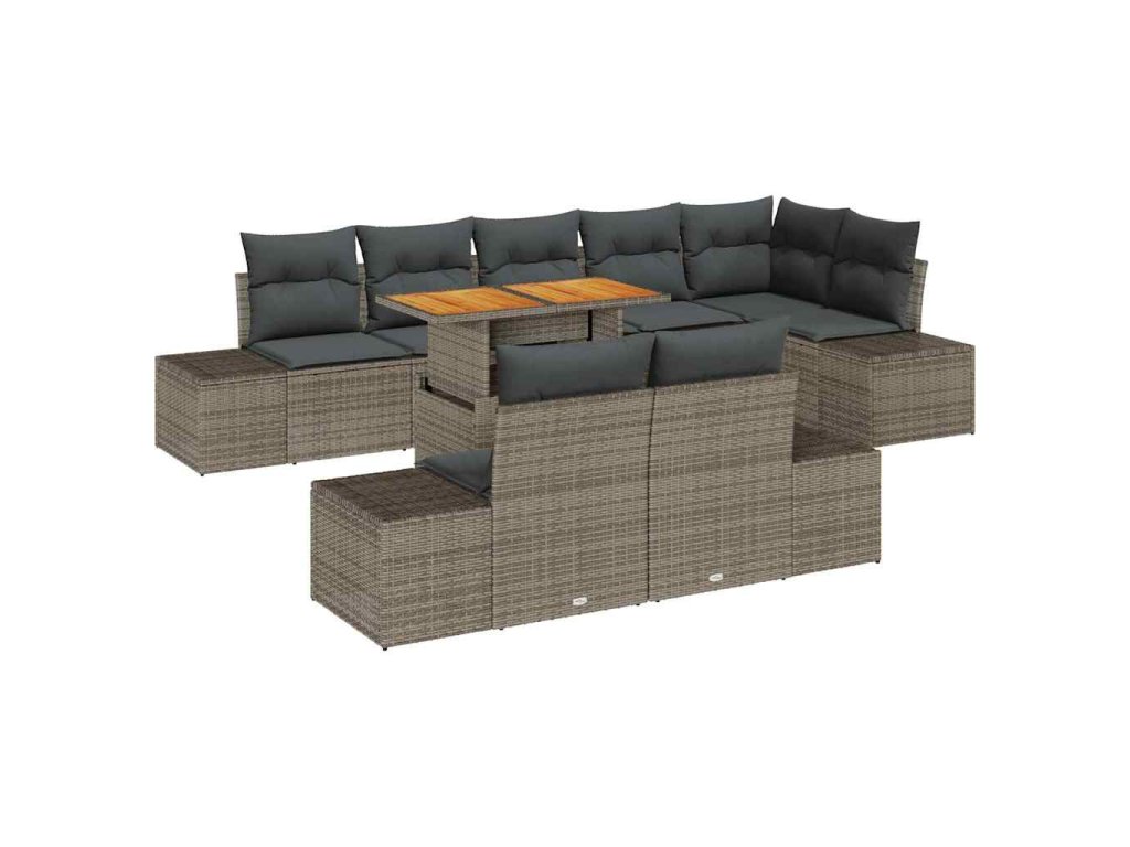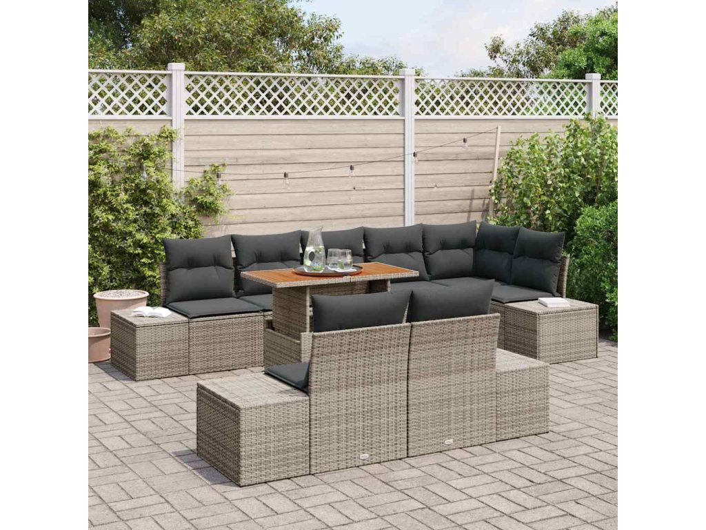 Tato moderní sada zahradního nábytku z polyratanu spojuje štíhlý, současný styl s neuvěřitelnou všestranností, navržena tak, aby zvyšovala jak estetiku, tak funkčnost v jakékoli zahradě nebo terase. Sada se pyšní ručně tkaným povrchem z polyratanu pro šik a robustní vzhled, doplněným masivními akáciovými dřevěnými plochami pro odolný a vizuálně atraktivní zážitek. Díky modulárnímu designu tato jídelní souprava umožňuje snadnou reorganizaci, nabízející nekonečné úpravy, které vyhovují shromážděním, intimním jídlům nebo odpočinkem s rodinou.