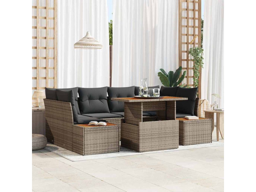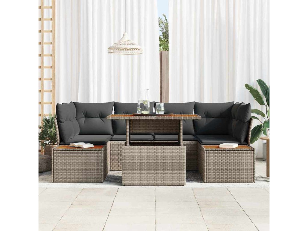 Zahradní jídelní souprava s polštářem 9 pcs Šedá a hnědá 3350036