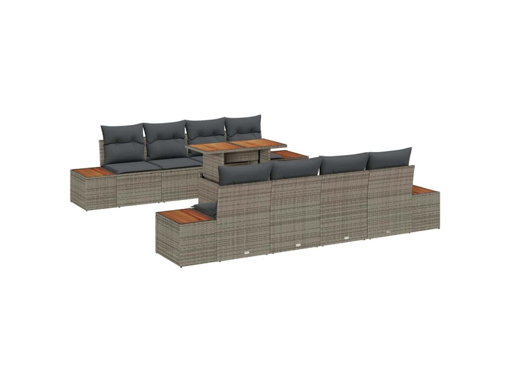 - Zahrnuté komponenty: Sada obsahuje čtyři boční pohovky a čtyři centrální sedáky, které mají úložný prostor. Zakončuje ji stylový zahradní stůl, takže máš kompletní balíček pro všechny tvoje venkovní sezení a vibes.