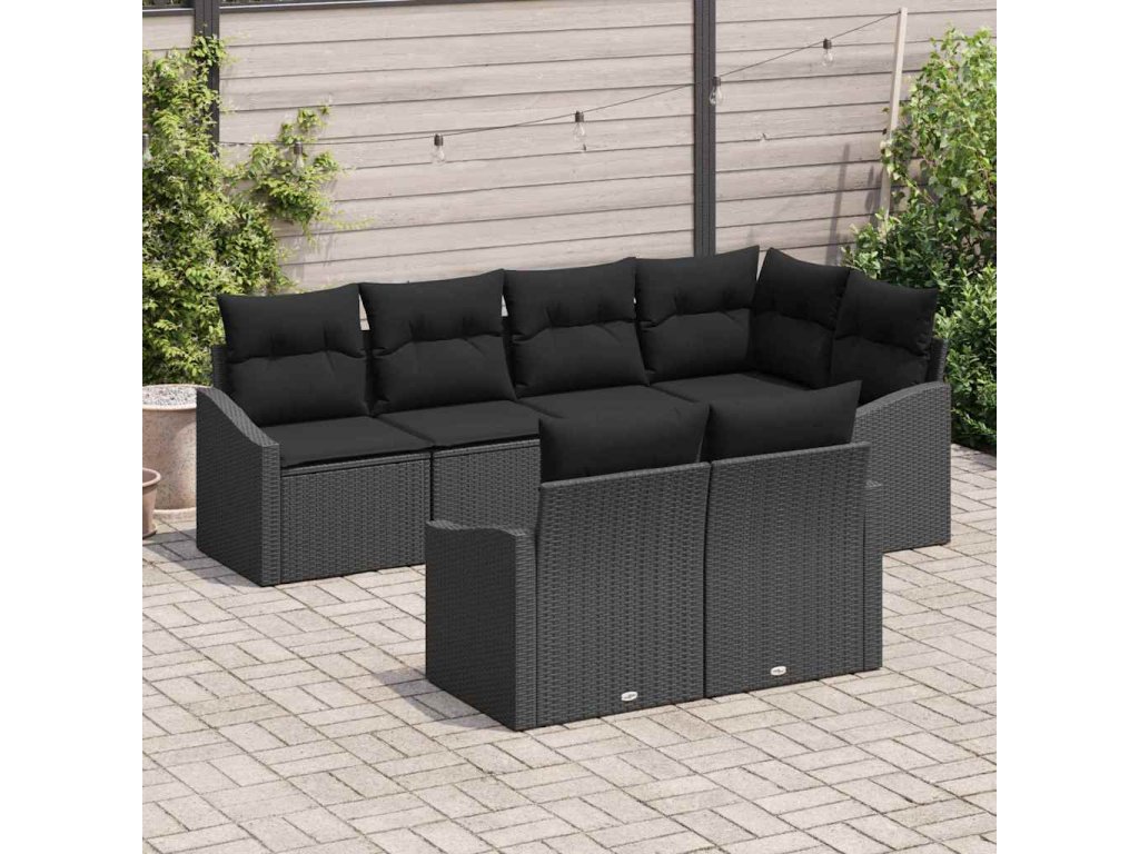 Zahradní jídelní souprava s polštářem s úložištěm 7 pcs Černá 3355432
