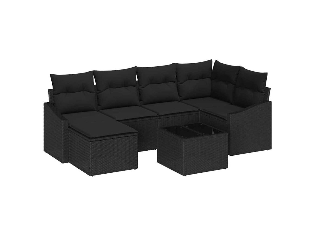 Zahradní jídelní souprava s polštářem s úložištěm 7 pcs Černá 3355472