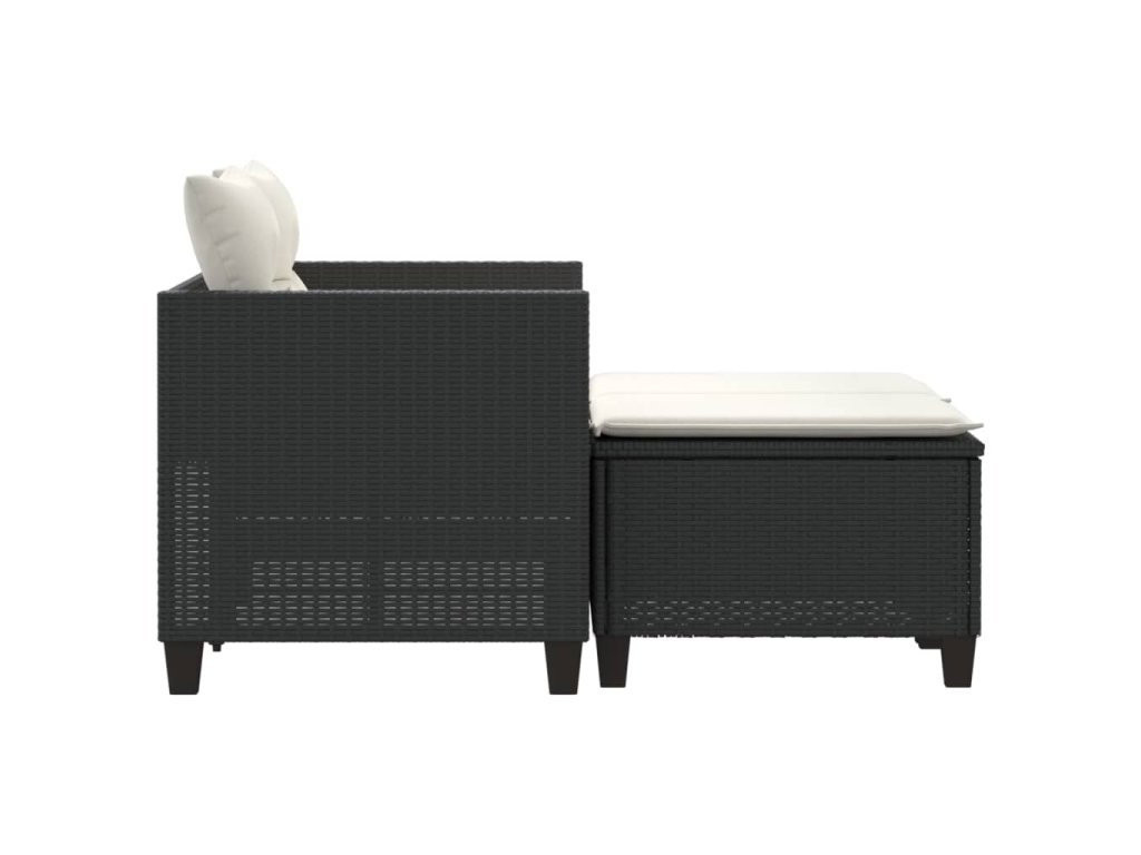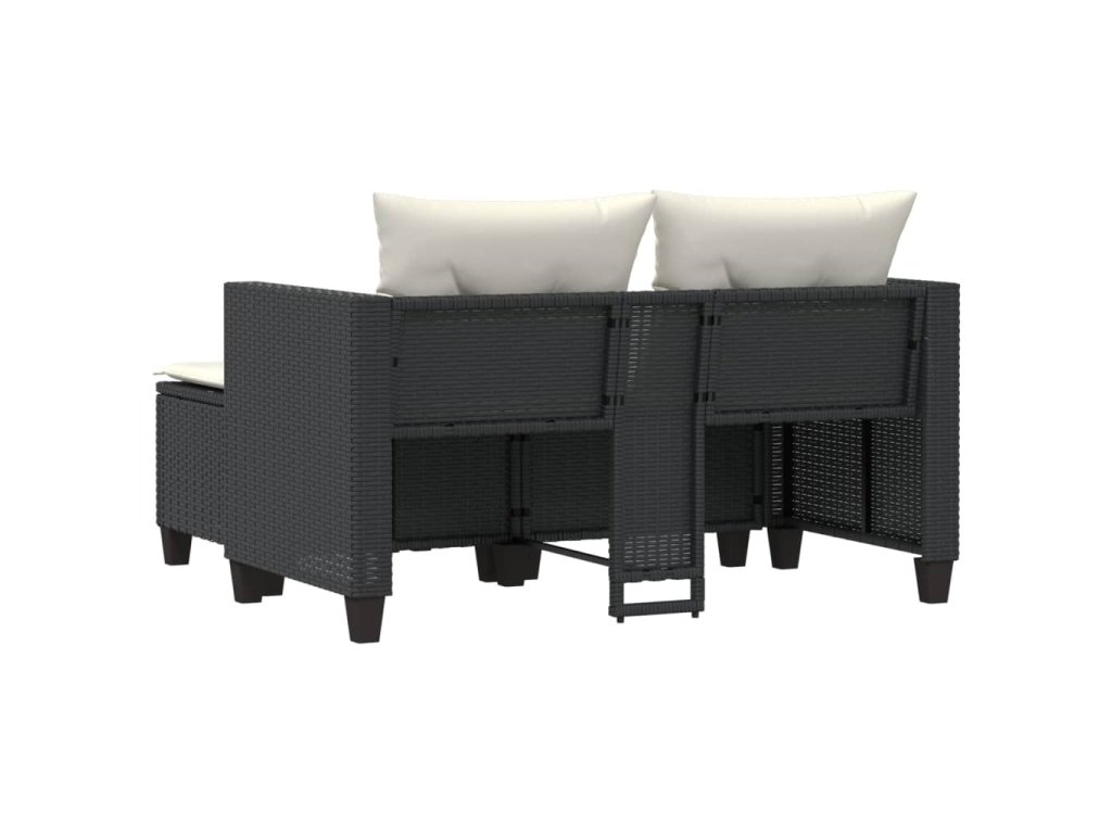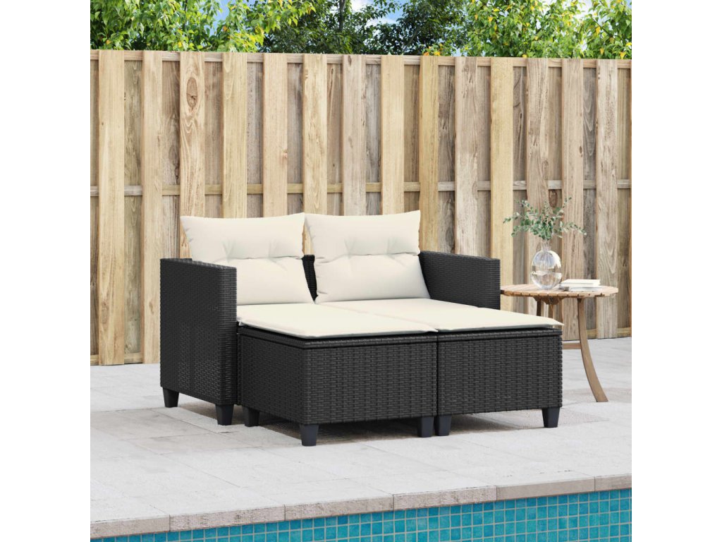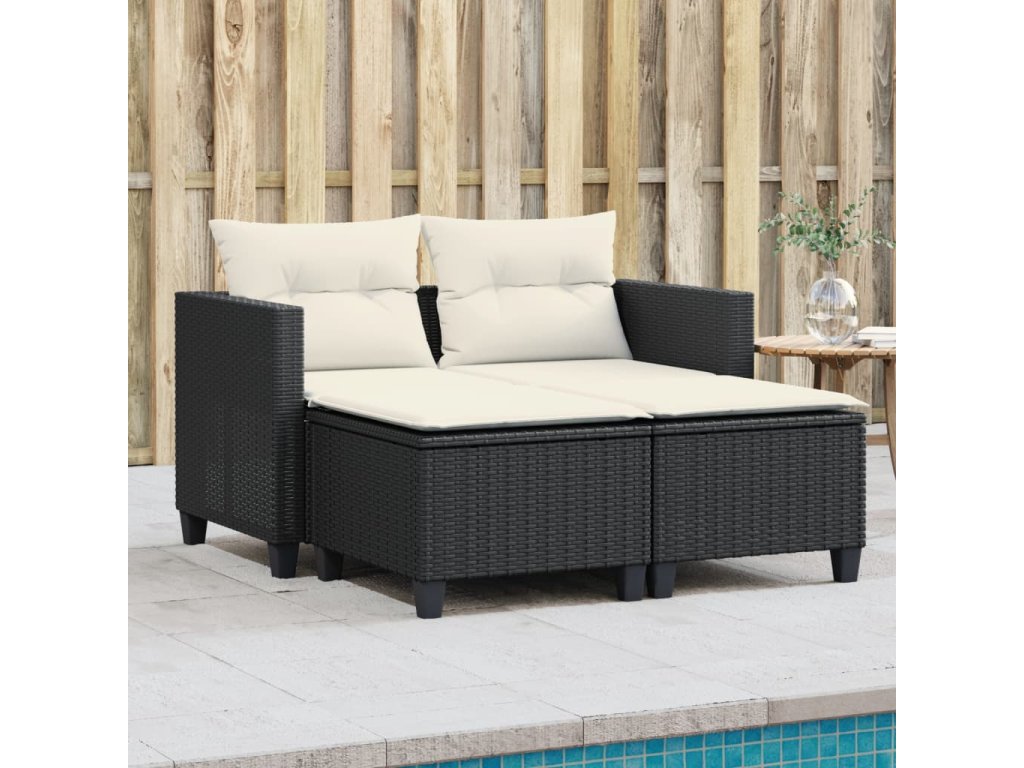 Zahradní pohovka 2místná s taburety černá polyratan 365790