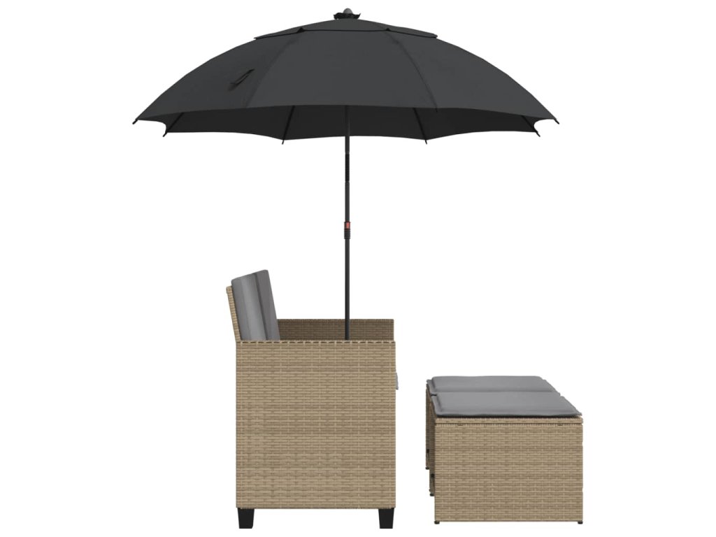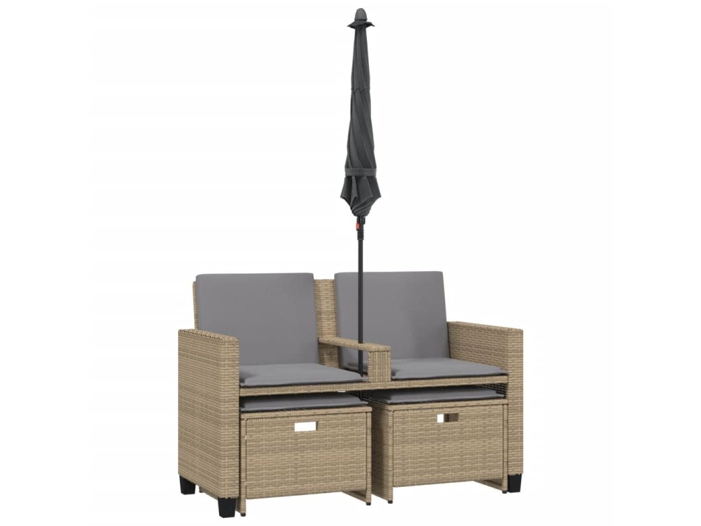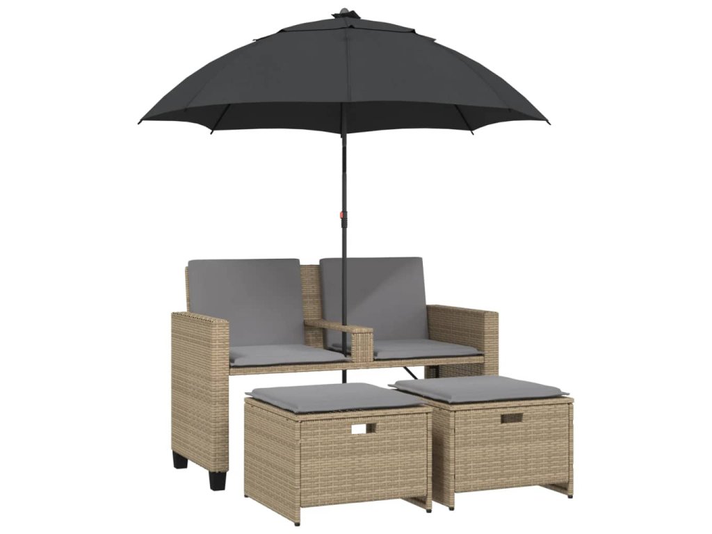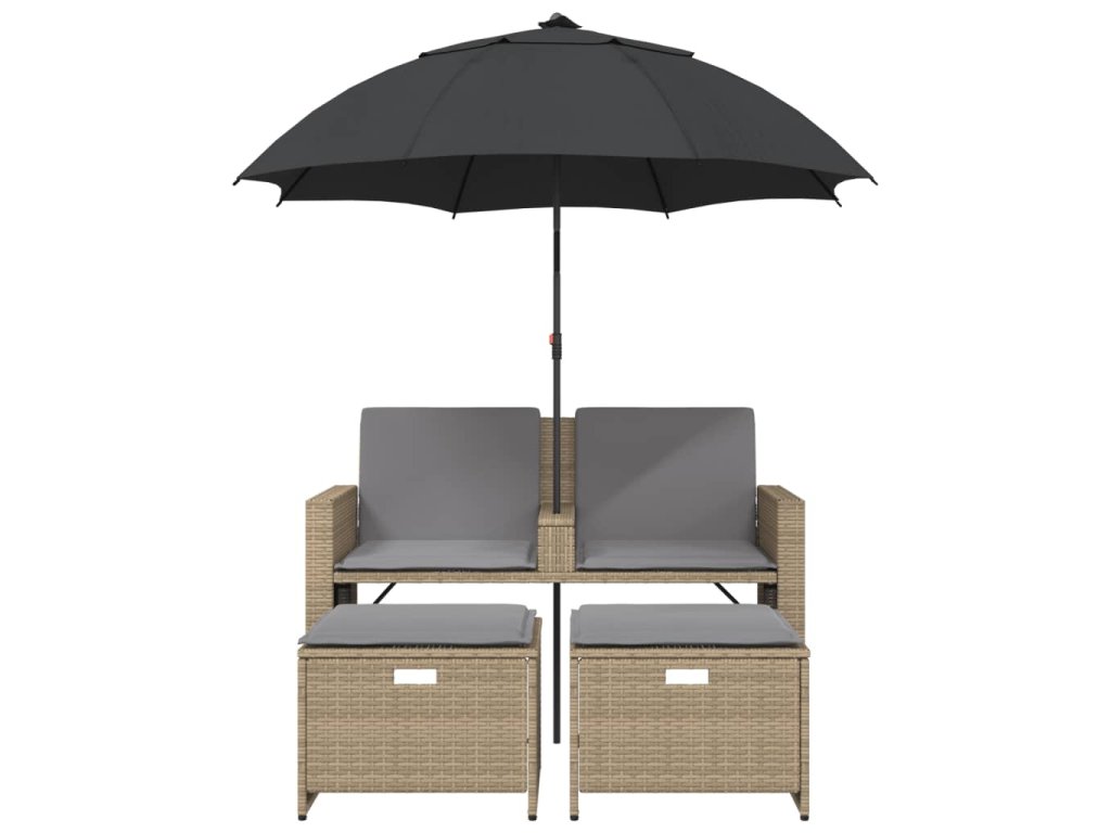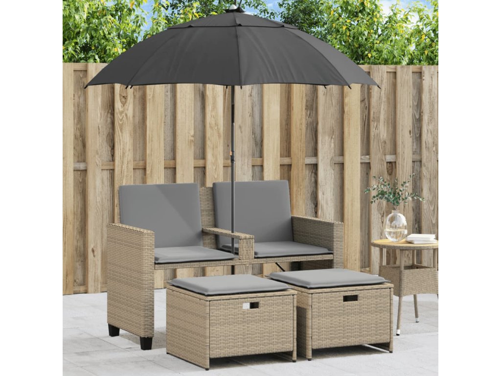 Zahradní pohovka 2místná slunečník a taburety béžová polyratan 365887