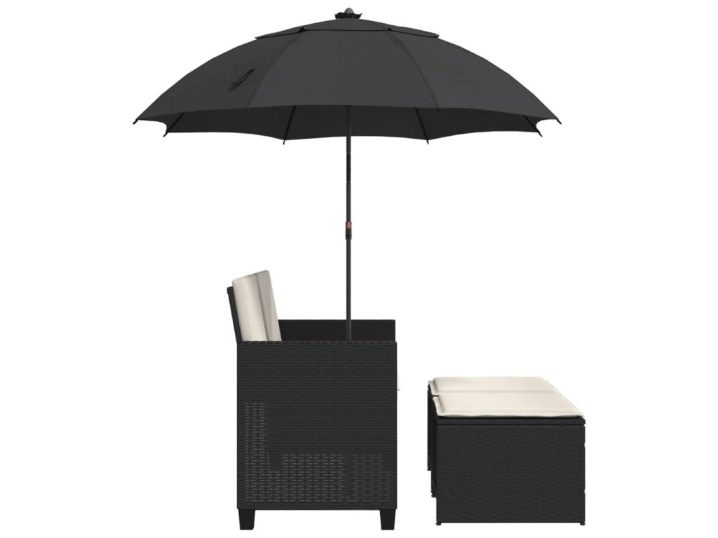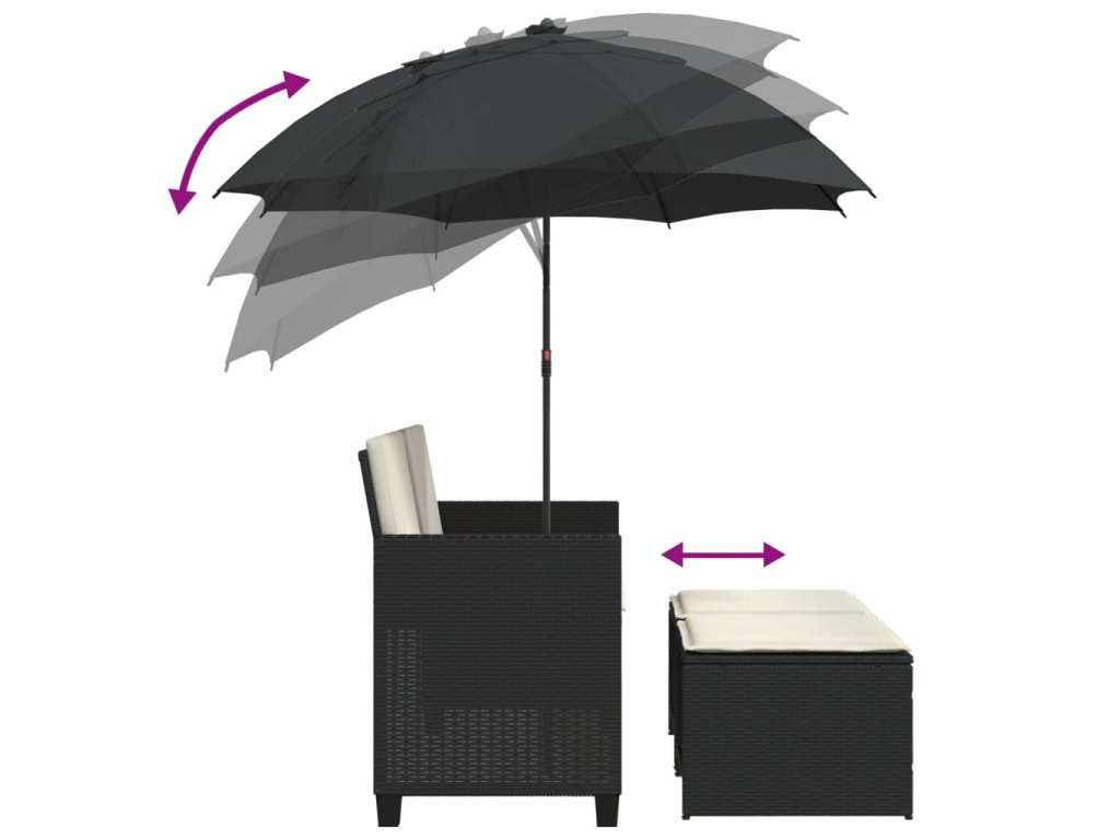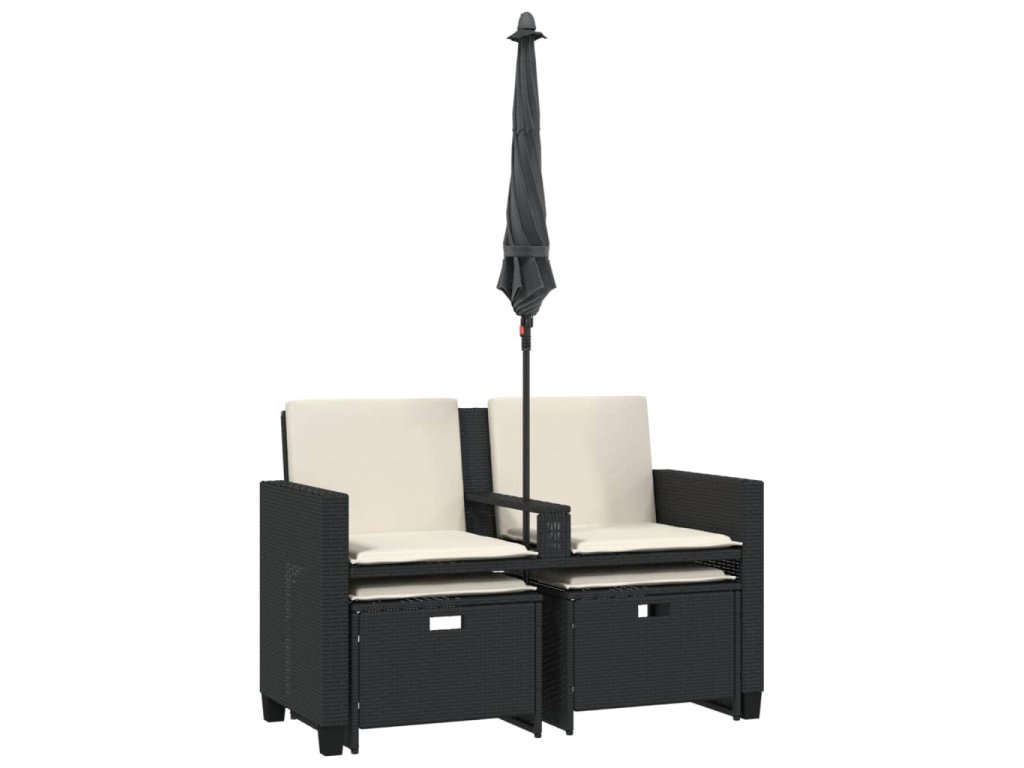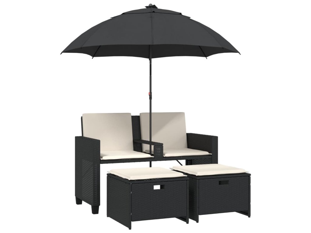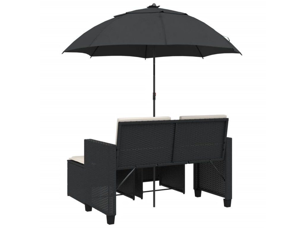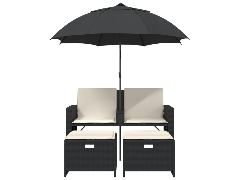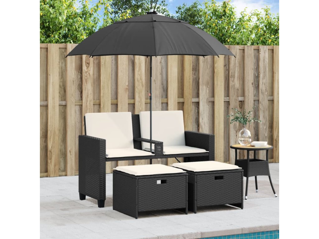 Zahradní pohovka 2místná slunečník a taburety černá polyratan 365882