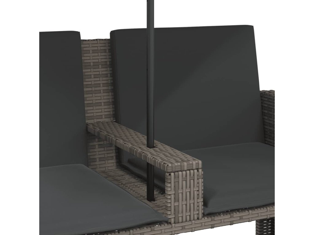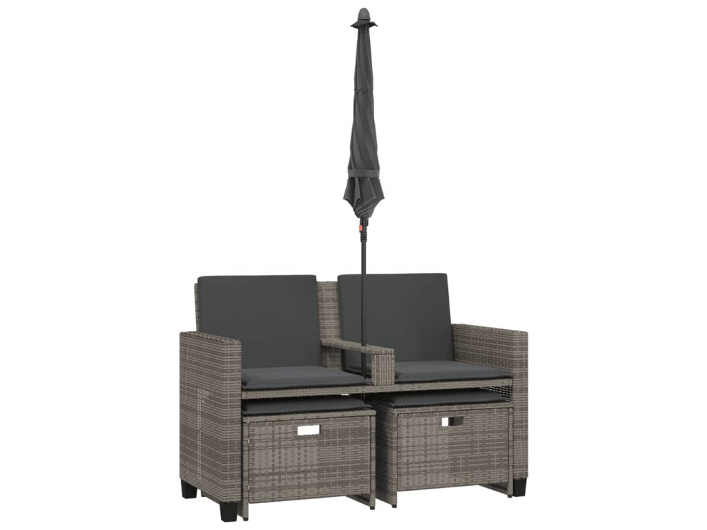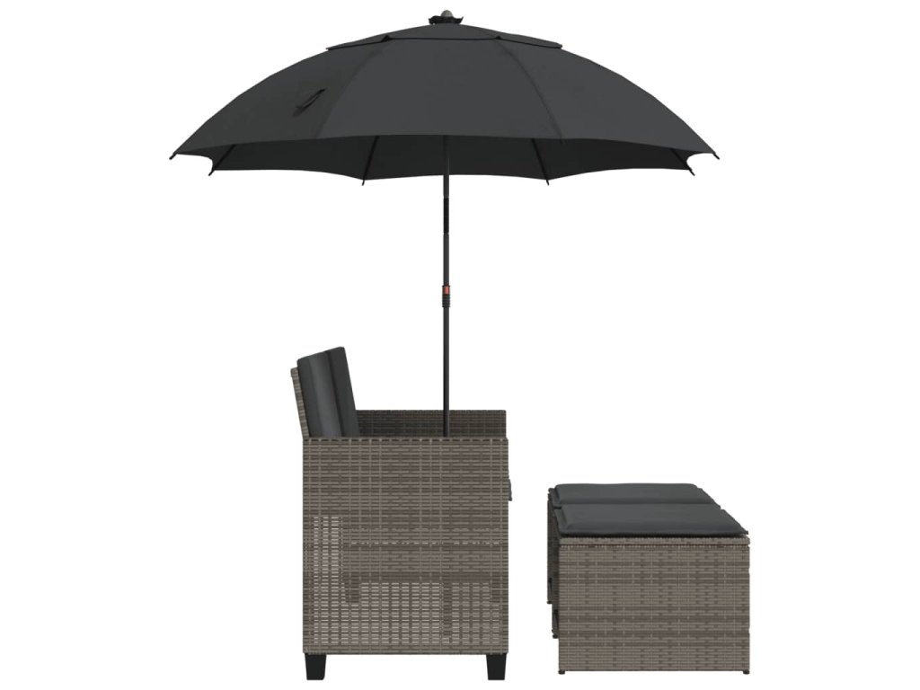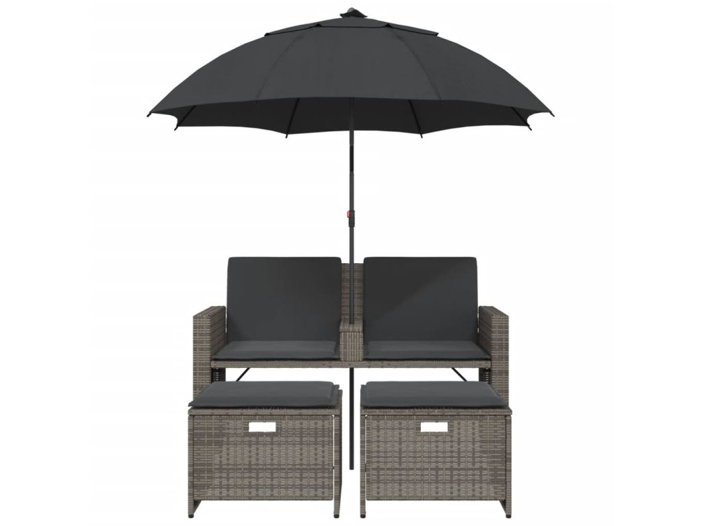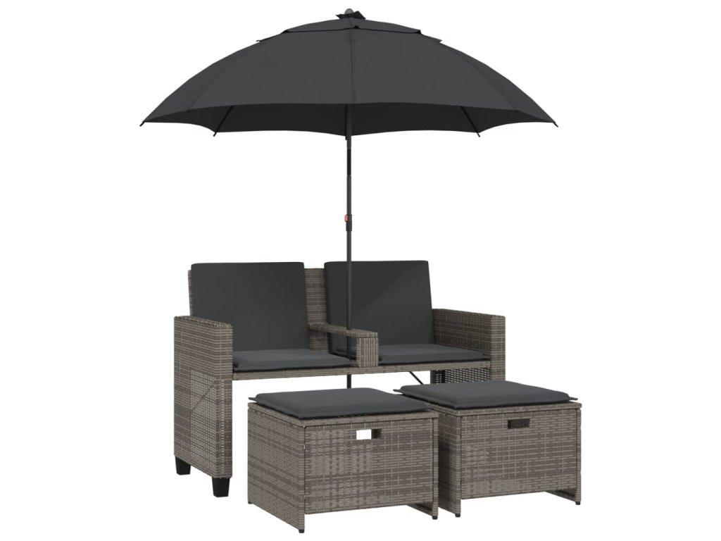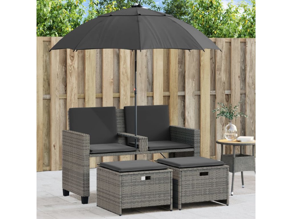 Zahradní pohovka 2místná slunečník a taburety šedá polyratan 365885