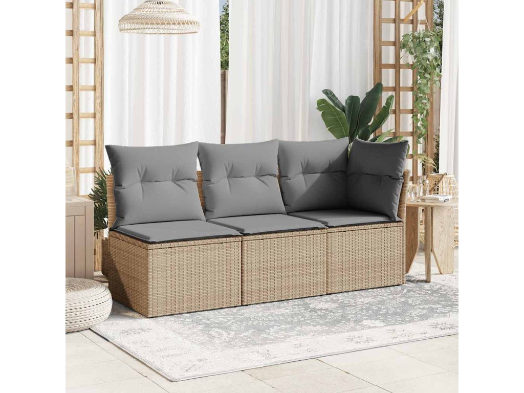 Zahradní pohovka bez područek s poduškami béžová polyratan 366085