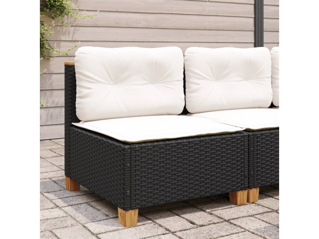 Zahradní pohovka bez područek s poduškami černá polyratan 365905