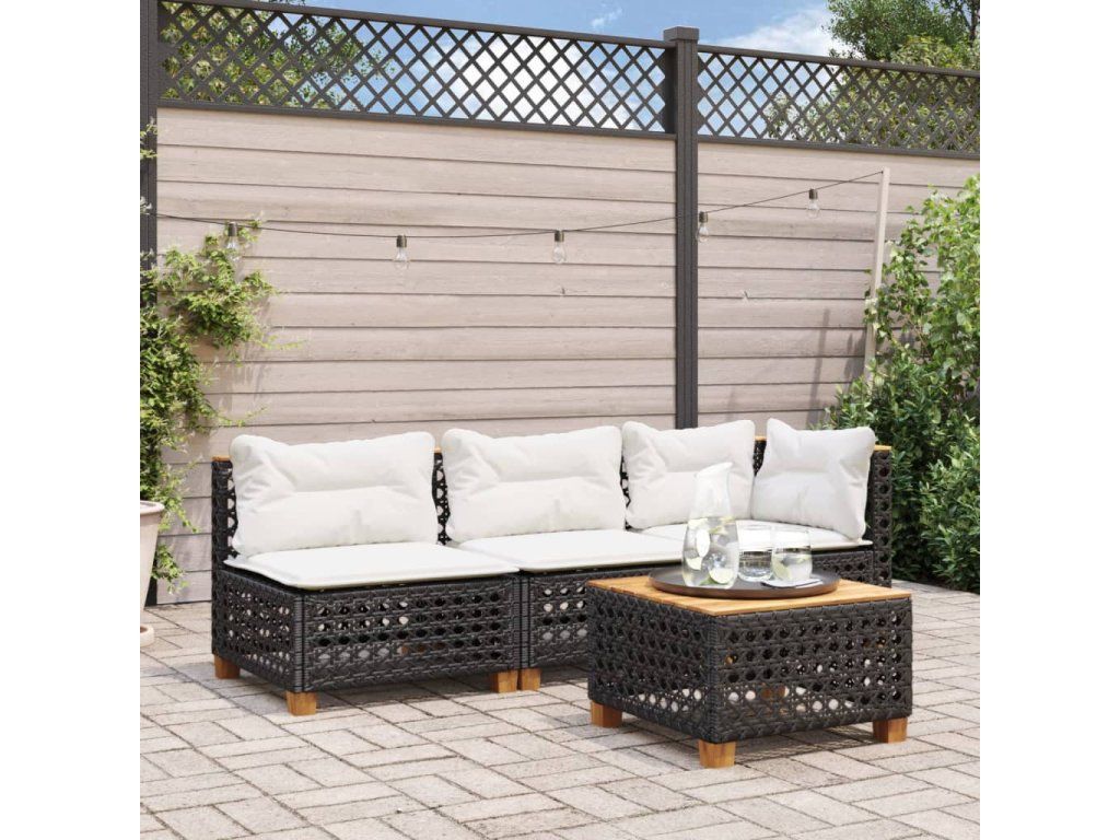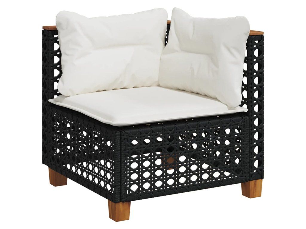 Zahradní pohovka rohová s poduškami černá polyratan 365923