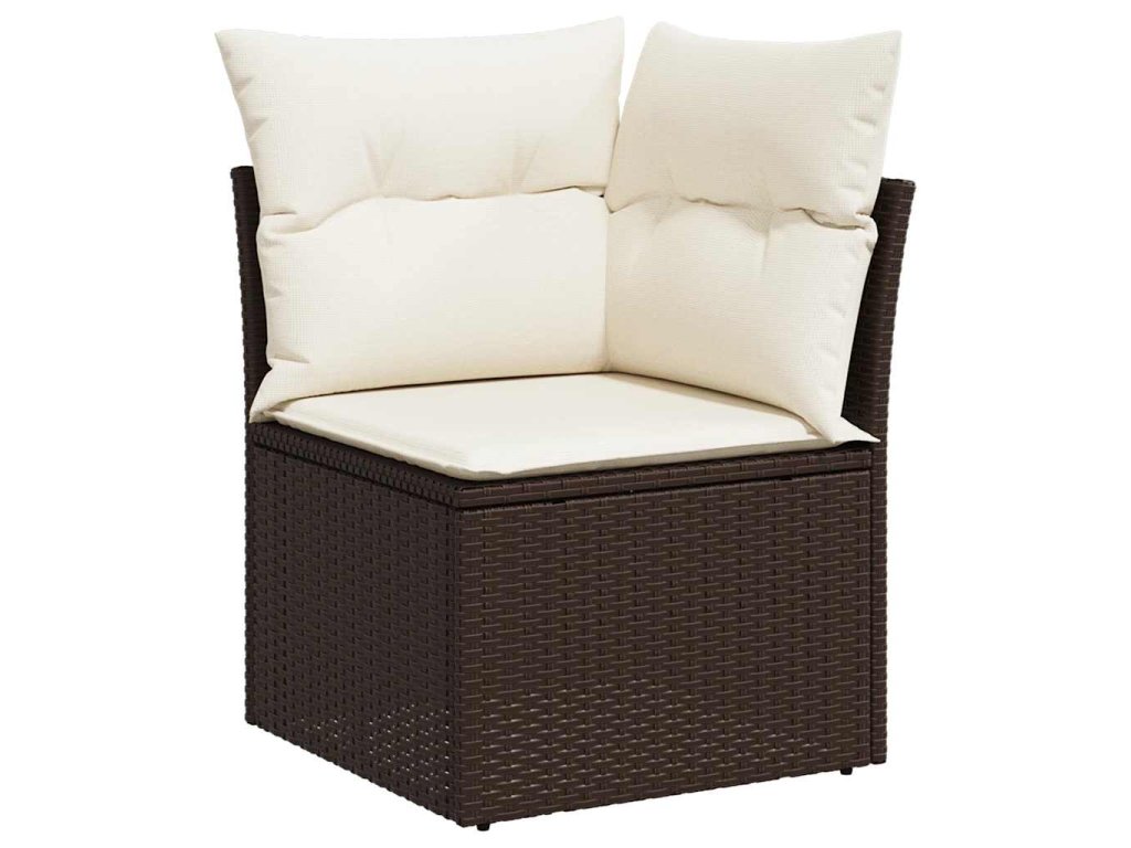 Zahradní pohovka rohová s poduškami hnědá polyratan 366200