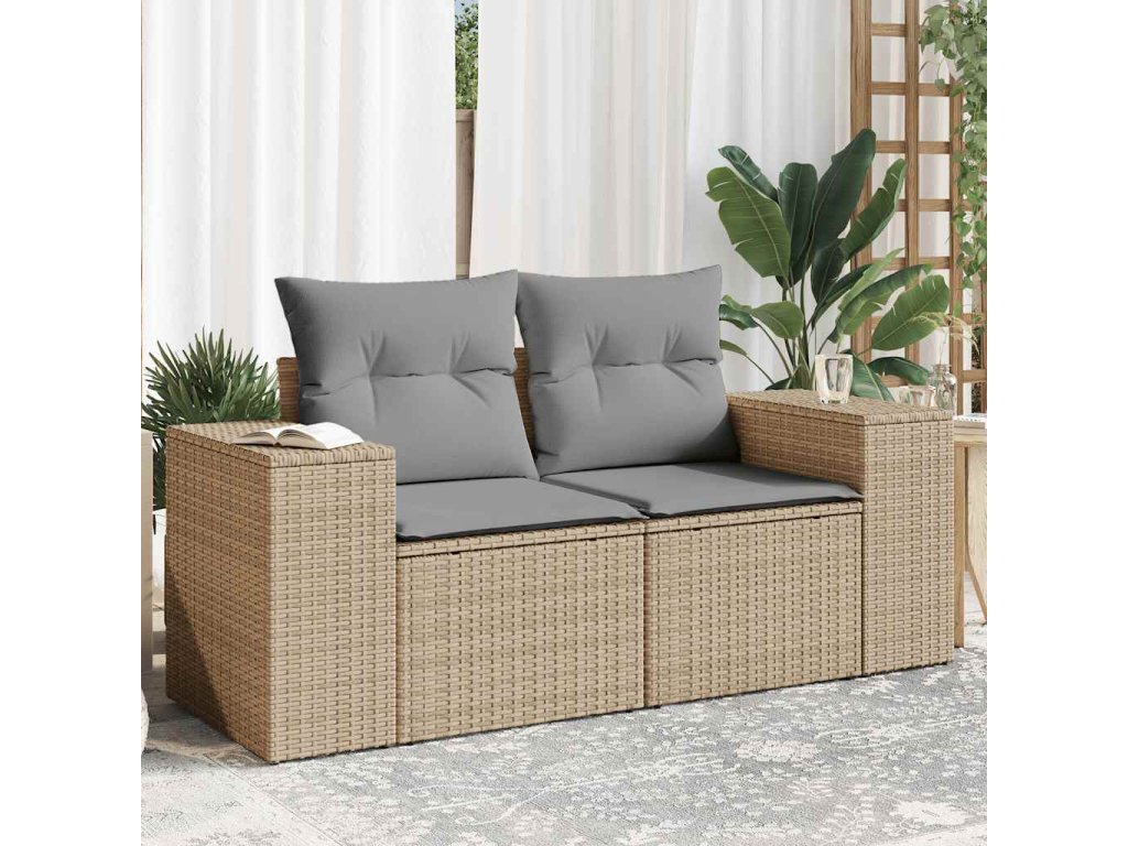 Zahradní pohovka s poduškami 2místná béžová polyratan 366096